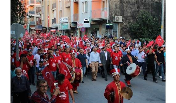 Gürsu protokolü ve binlerce vatandaş, ilçedeki törenin ardından, Bursa Demokrasi Meydanı’nda gerçekleştirilen törene katıldı.