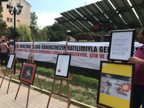 15 Temmuz’un öğrencilerin gözünden anlatıldığı resim, şiir ve kompozisyonlardan oluşan sergi, Gürsu Kent Meydanı’nda izlenime açıldı.