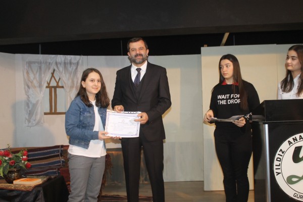 İstiklal Marşı’nın protokol tarafından söylendiği programda, Yıldız Anadolu Lisesi öğrencilerinin hazırladığı piyes ve gösteriler sahnelendi.