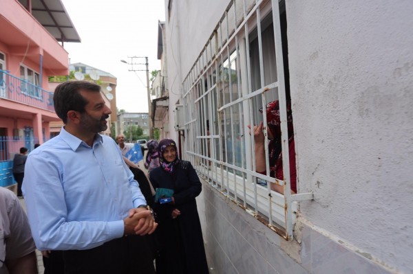 Başkan Işık, ilçenin ihtiyaçlarını tespit etmek amacıyla yaptığı saha incelemeleri sırasında, ilçe halkının hizmetlere ilişkin önerilerini de dinlemekte.