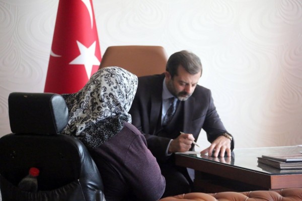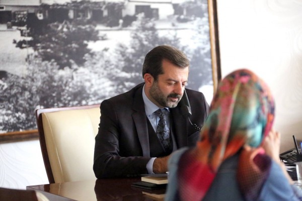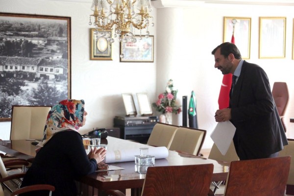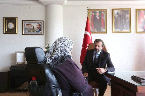 Gürsu Belediye Başkanı Mustafa Işık, makamında düzenlenen halk günlerinde, ziyarete gelen ilçe halkının talep ve önerilerini dinliyor.