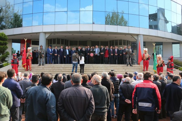 Belediye hizmet binası önünde düzenlenen törende, Başkan Işık’amazbatasını sunan Ak Parti Bursa Milletvekili Atilla ödünç, Gürsu’nun gelişimi için Başkan Işık’ın güzel hizmetler gerçekleştireceğine inandığını vurgulayarak, hizmet yolunda başarılar diledi.