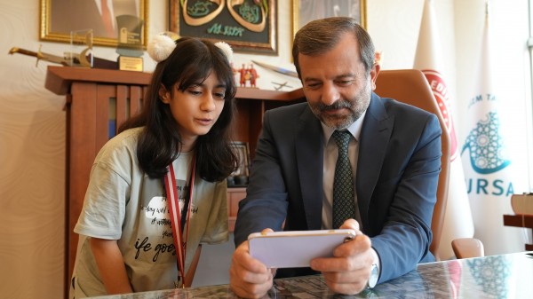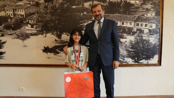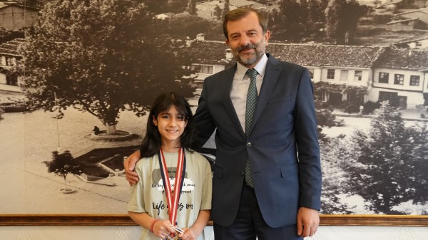 Türkiye Kyokushin Stil Şampiyonası 1.si Gürsulu Ecrin Bayram, Gürsu Belediye Başkanı Mustafa Işık’ı makamında ziyaret ederek başarısının mutluluğunu Başkan Işık’la paylaştı.