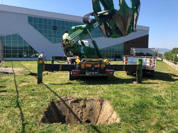 Gürsu Yenidoğan Mahallesi’ne yapılacak Sağlık Ocağı’nın inşa edileceği alanda bulunan ağaçlar, kesilmeden yeni yerlerine taşınıyor.