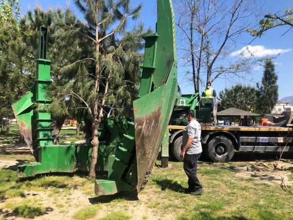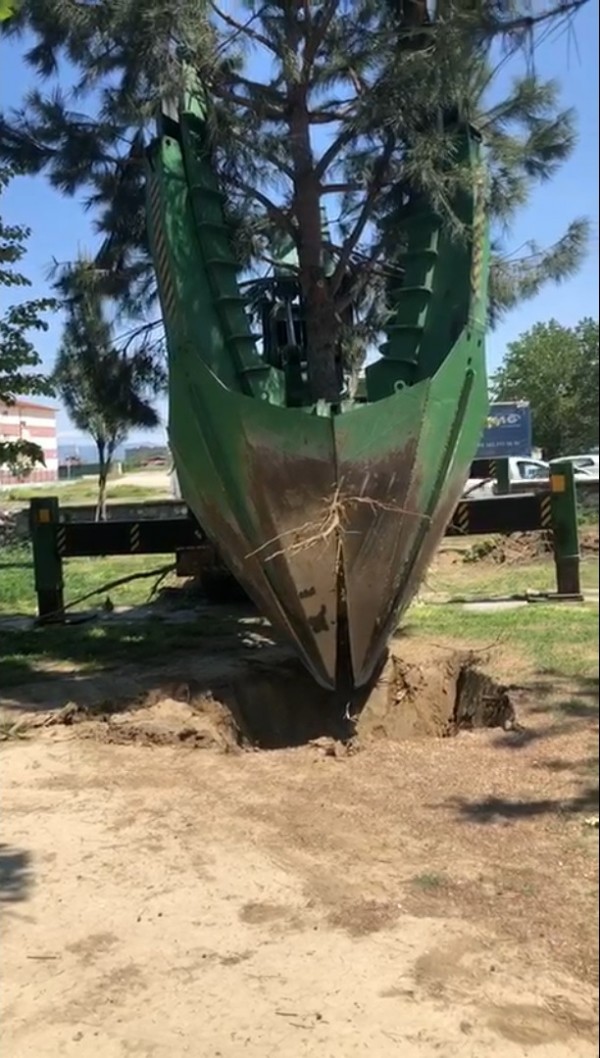 Ağaçlar kesilmeden, tek tek özenle yerlerinden alınarak başka alanlarda kullanılmak üzere taşınıyor.