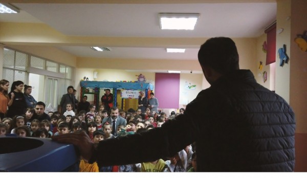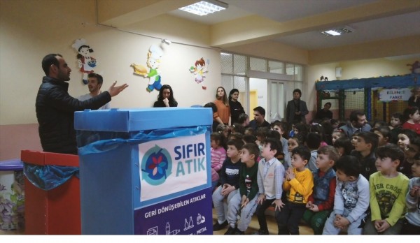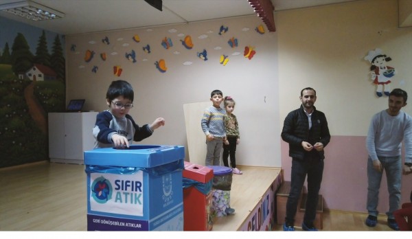 Geri dönüştürülebilir atıklar, kağıt, karton, plastikler, piller, bitkisel atık yağlar, cam ve tekstil atığı toplanmasında çocuklarda bilinç oluşturulmasını sağlama amacıyla düzenlenen eğitimlerde, çocuklar geri dönüşüm kutularının kullanımını uygulamalı olarak öğreniyor.