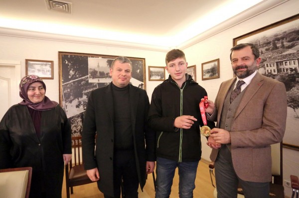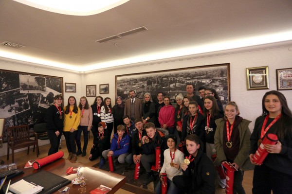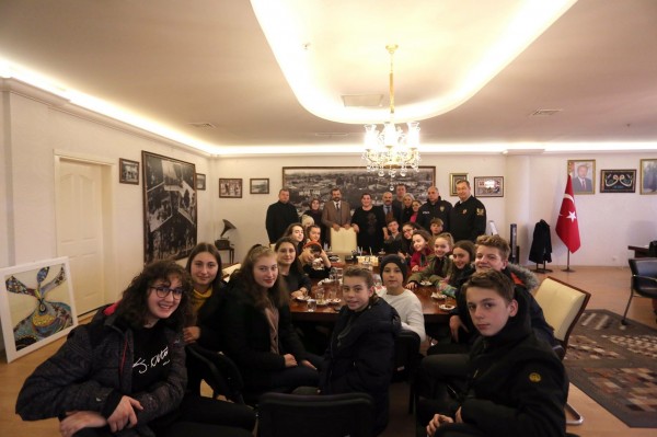 Gürsu Belediye Başkanı Mustafa Işık’ı makamında ziyaret eden Makedonyalı gençler, kamp süresince aldıkları eğitimler ve uygulamalar hakkında Başkan Işık’la sohbet etti ve hatıra fotoğrafı çekildiler.