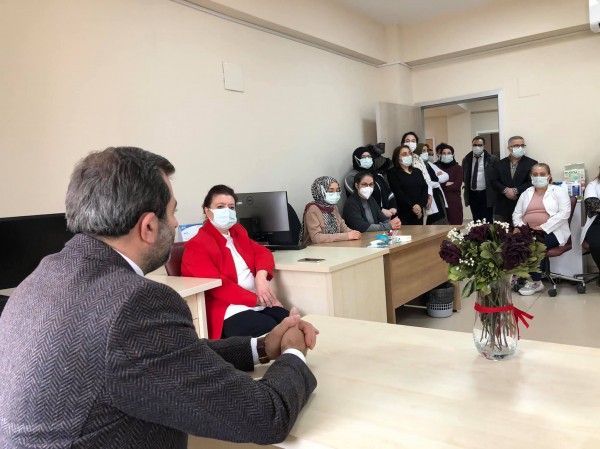 Sağlık kuruluşlarını ziyaret eden protokol mensupları, çalışanlarla sohbet ederek hatırlarını da sordu.