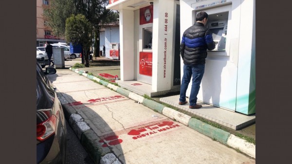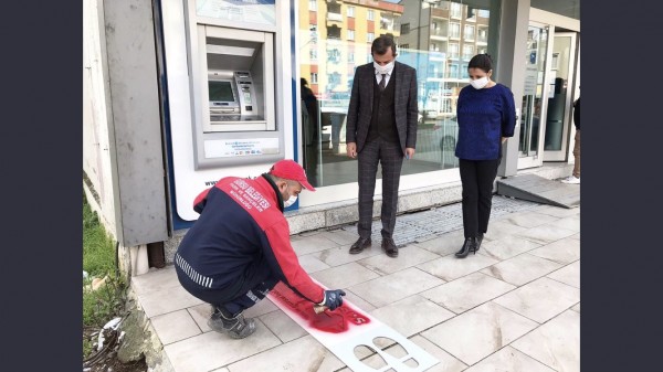 Gürsu Belediyesi, coronavirüsten korunma tedbirleri kapsamında, otobüs duraklarına ve ATM’lerin önlerine sosyal mesafe işaretleri oluşturdu.