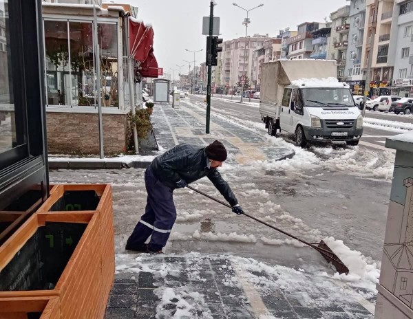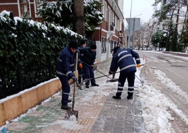 Kar temizleme çalışmalarını yoğun olarak sürdüren Gürsu Belediyesi Fen İşleri Müdürlüğü ekipleri, ilçe merkezindeki cadde ve sokaklarda buzlanmayı önleyici çalışmalar yapıyor. Özellikle kaldırımları kardan arındıran ekipler, vatandaşların kayarak düşmemeleri için önlemler alıyor.