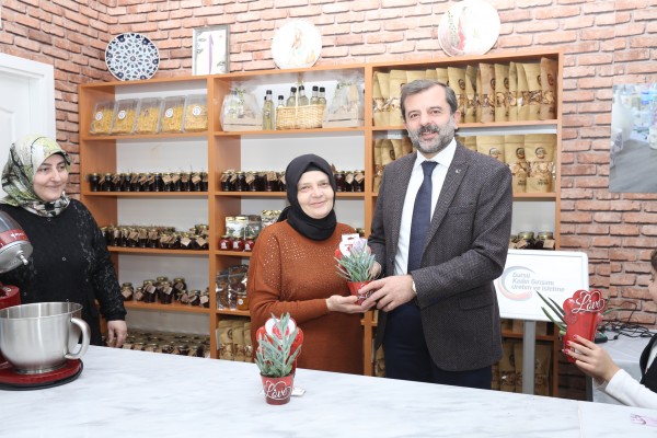 Gürsu üretici Kadın Kooperatifi’ni de ziyaret eden Başkan Işık, kadınların gününü kutlayarak hediyeler sundu ve sohbet etti.