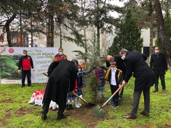 Orman Haftası dolayısıyla, Gürsu protokolü, Gürsu’lu öğrencilerle birlikte fidan dikti.