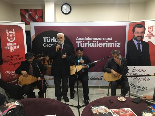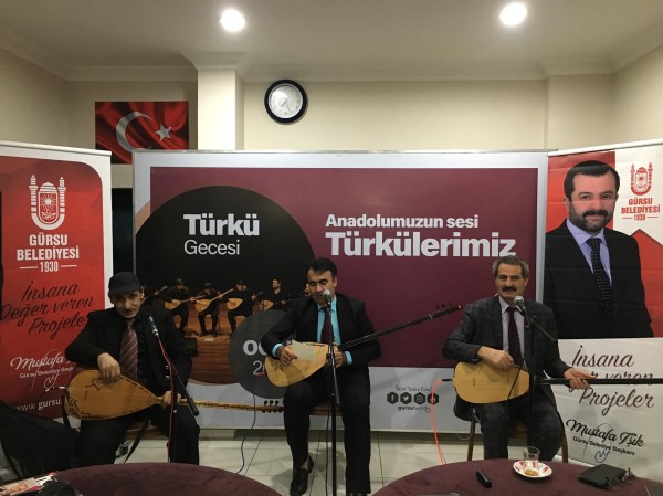 Gürsu Belediyesi’nce gerçekleştirilen kültür sanat etkinlikleri kapsamında düzenlenen “Türkü Geceleri” nde manevi değerlerimiz ozanların sazlarıyla dile geliyor. “Kültür Kenti Gürsu” sloganıyla, Gürsu Belediyesi’nce gerçekleştirilen etkinlikler kapsamında düzenlenen Türkü Geceleri, Gürsulular’ı biraraya getiriyor. Her hafta, hemşehri derneklerinin ev sahipliklerinde düzenlenen Türkü Gecesi, bu kez de Gürsu Ardahanlılar Derneği ile Gürsu Erzurum Aşkale Yeniköylüler