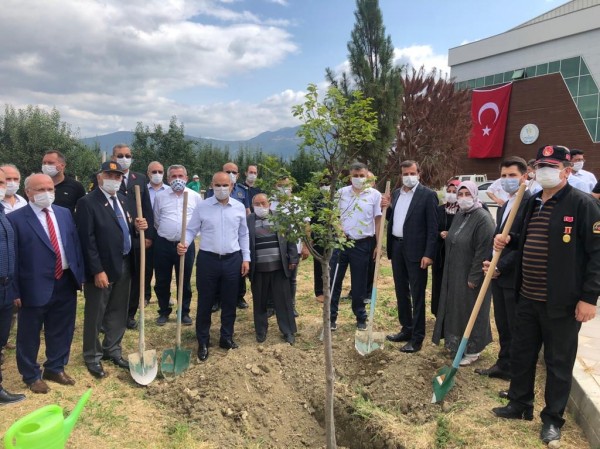 Gürsu protokolünün katılımıyla, Gürsu Spor Fabrikası bahçesinde, şehitler anısına fidan dikimi yapıldı.