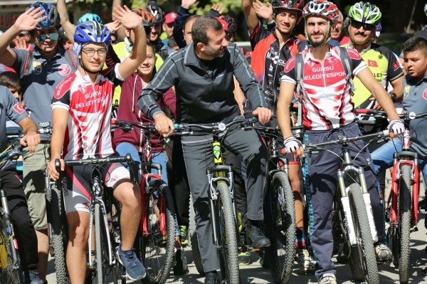 Gürsu Belediyesi önünde toplanan genç bisiklet tutkunları, Gürsu Belediye Başkanı Mustafa Işık ve Gürsu Gençlik Hizmetleri ve Spor İlçe Müdürü Halim Tuğluoğlu’nun da katıldığı bisiklet turu kapsamında, Gürsu’nun doğal güzelliklerinin tadını çıkardı.