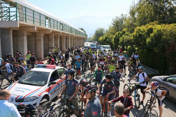 Gürsu merkez, Adaköy, İğdir, Ağaköy ve Gürsu Spor Fabrikası güzergahında düzenlenen bisiklet turu, “Arabadan in bisiklete bin” sloganıyla gerçekleştirildi.
