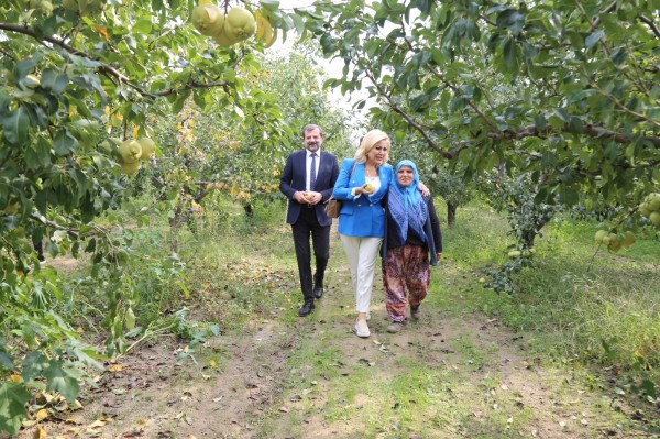 Gürsu’nun simgesi olan Armut meyvesinin yoğun olarak yetiştirildiği Ağaköy’deki üreticileri, Gürsu Belediye Başkanı Mustafa Işık’la birlikte ziyaret eden YavuzDonat ve Şebnem Bursalı, Ericek Adrenalin Park, Sporcu Fabrikası ve Gürsu Kadın Girişimi üretim ve İşletme Kooperatifi’ni de gezerek, yapılan çalışmaları da inceledi. Armut üretiminde çalışan kadınlarla birlikte armut toplayan usta gazeteciler, “Bizim elimiz armut topluyor” diyerek kadına şiddete hayır dedi.