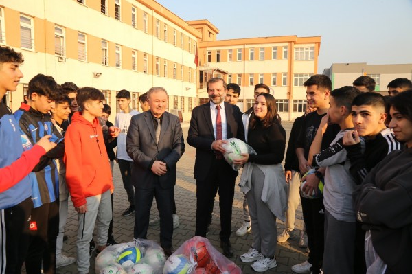 Gürsu Belediye Başkanı Mustafa Işık, ilçeye kazandırdığı 'Spor kenti Gürsu' sıfatını, her gün ürettiği proje ve okullarla kurduğu iletişimle daha da sağlamlaştırıyor. İlçedeki birçok okula spor malzemesi desteği ulaştıran Başkan Işık, bu kez de kendilerinden spor topu isteyen gençleri kırmayıp, bizzat okullarına kadar ulaştırdı.