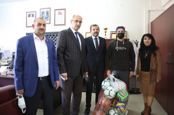 ilçedeki 29 okula futbol, basketbol, voleybol, masa tenisi ve badminton branşlarına ait malzemeler dağıtıldı.