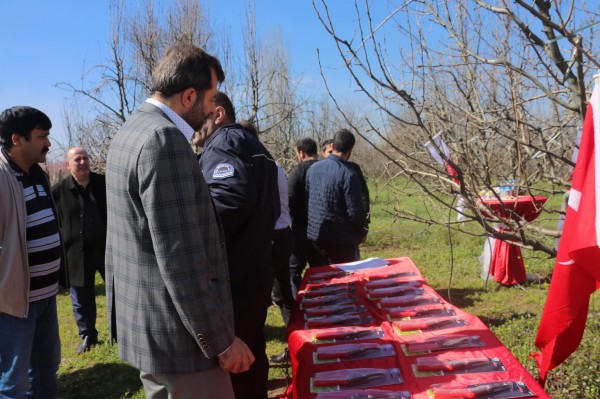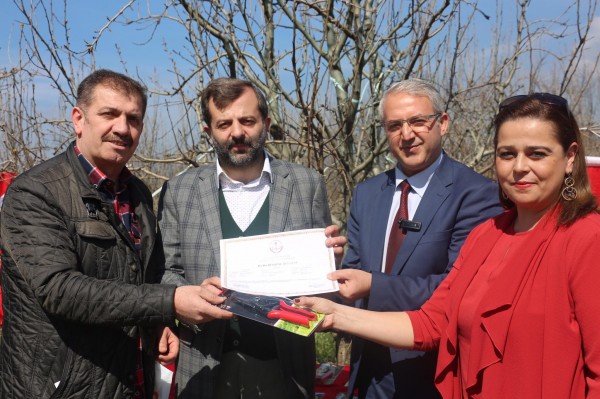 Bu kapsamda açılan “Ağaç Budama Kursu” nu tamamlayan kursiyerler, armut ağaçlarının arasında düzenlenen törenle sertifikalarını aldı.