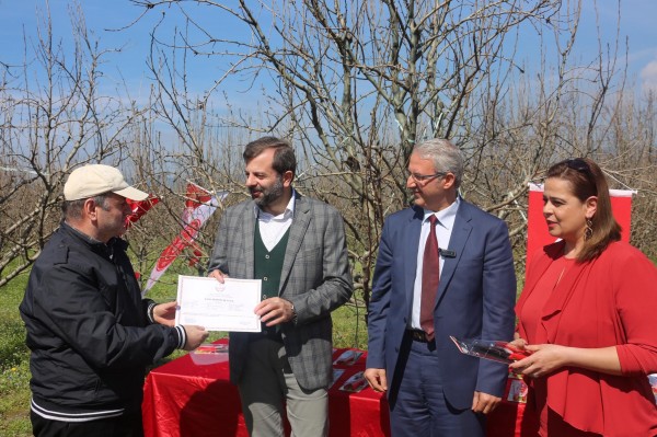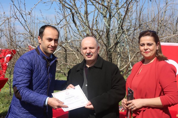 Armut ağaçlarının arasında yapılan törende kursiyerler sertifikalarını Başkan Işık’ın elinden aldı. Törenin ardından uygulama konusunda Başkan Işık’a bilgiler sunuldu.