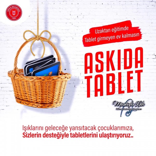 “Işıklarını geleceğe yansıtacak çocuklarımıza, sizlerin desteğiyle tabletlerini ulaştırıyoruz” sloganıyla düzenlenen “Askıda Tablet” kampanyası kapsamında temin edilen tabletler, Gürsu Belediyesi Sosyal İşler Müdürlüğünce öğrencilere ulaştırılıyor.