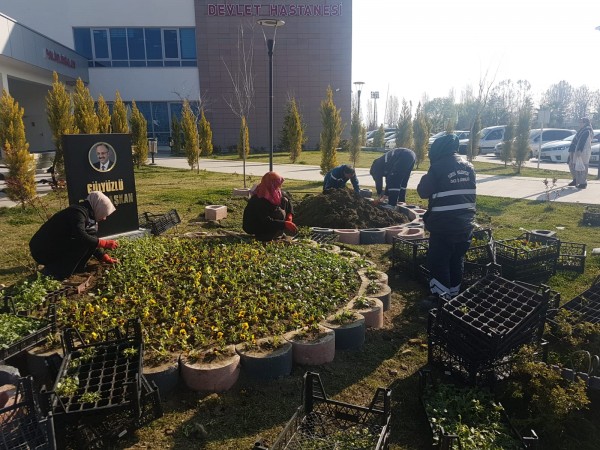 Hastane bahçesi ve çevresindeki alanlarda yapılan peyzaj çalışmalarıyla Hastane’nin çevresinin görselliği arttırıldı.