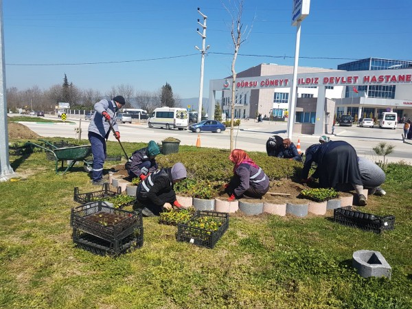 Gürsu Belediyesi Park ve Bahçeler Müdürlüğü’nce yapılan peyzaj çalışmalarıyla, Cüneyt Yıldız Devlet Hastanesi’nin bahçesi ve çevresi çiçek açtı.