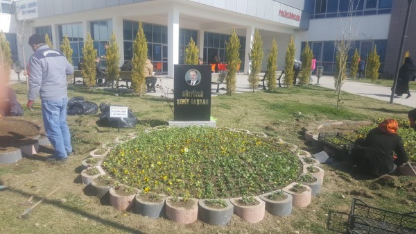 Şehit Belediye Başkanı Cüneyt Yıldız’dan adını alan Hastane’nin girişinde oluşturulan bölümde ise, “Gülyüzlü Şehit Başkan” yazısı ve Yıldız’ın fotoğrafı yer almakta.
