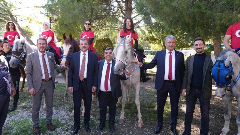Atlı kortejdeki geçitin ardından meydanda oluşturulan alanda Başka Işık at bindi.