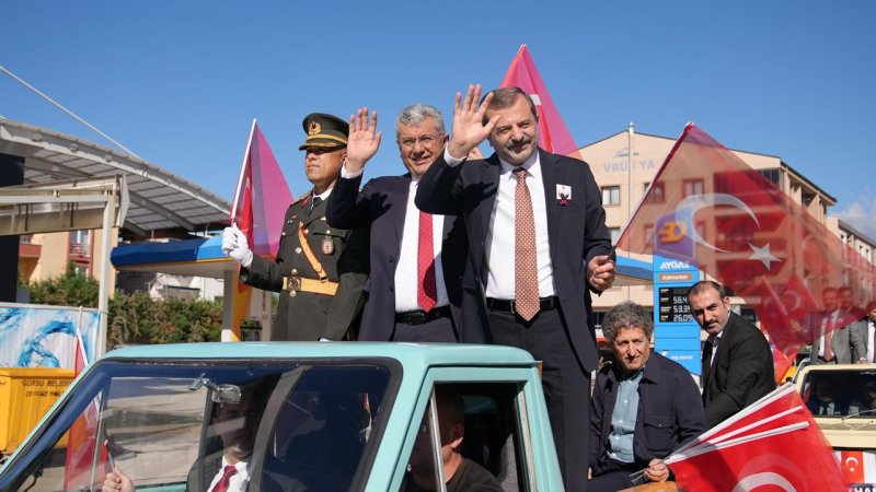 Gürsu Belediyesi’nin Cumhuriyet Bayramı kutlaması şölene dönüştü. İlçede bir klasik haline gelen ve ilçeyi temsil eden nostaljik araca binen Gürsu Belediye Başkanı Mustafa Işık, Gürsu Kaymakamı Murat Kütük ve ilçe protokolü halkı selamladı. Atlı kortejin eşlik ettiği büyük yürüyüşün ardından, ilçe meydanında Gürsu Esnaf Odası’nın geleneklerimizi ve değerlerimizi yansıtan etkinlikleri sergilendi. Meydanı şölene çeviren etkinlikler, ilçe protokolünün çiftelelli oynaması ile başladı. Ardınd
