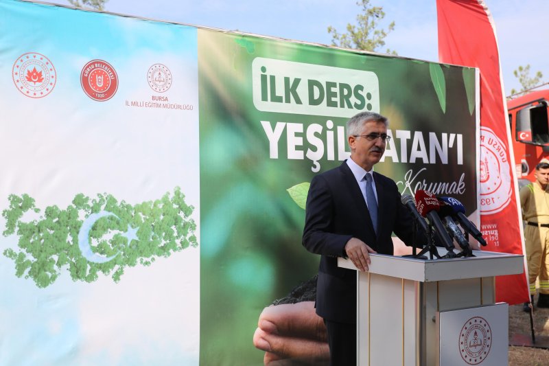 Gürsu ilçesinde çıkan ve tarihinin en büyük felaketlerinden birisi olarak değerlendirilen orman yangını sonrası, küle dönen Gürsu Belediyesi'nin 80 dönümlük dev mesire alanında yapılan ilk ders öncesi konuşan Millî Eğitim Bakan Yardımcısı Nazif Yılmaz, "Bu vatan toprağımızın yeşil olarak muhafaza edilmesi, üzerinde kendi kültürel mirasımızla yaşayabilmemiz çok önemli. Bununla ilgili büyük çaba sarf ediyoruz. Dünyamız küresel ısınma ve çevre sorunlarıyla karşı karşıya. Çocuklarımızı bu bilinçle yetiştirmeliyiz. Bizim görevimiz çocuklarımızı hem vatanına bağlı bireyler hem de doğaya sahip çıkan nesiller olarak yetiştirmek. Her çocuk bir fidandır; vatanı geleceğe taşıyacak ulu çınarlardır" diye konuştu.