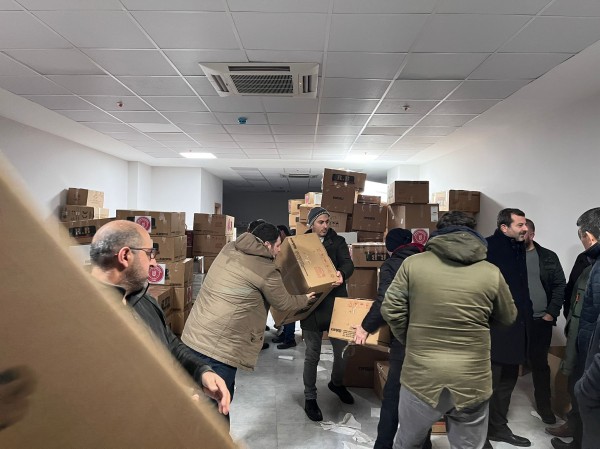 Halktan gelen yardımlar, kaymakamlık ve belediye personelleri tarafından tek tek tasnif edilip kolilenerek afet bölgesine gönderiliyor.