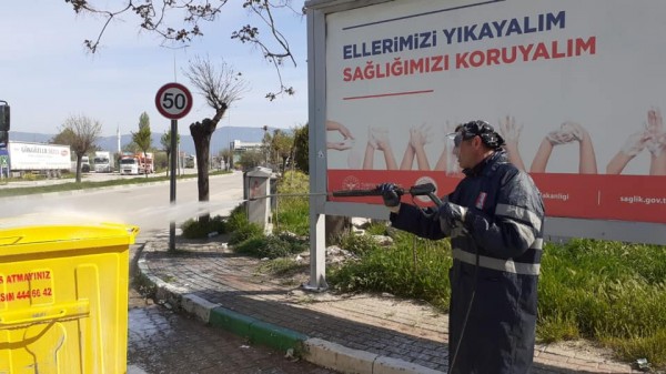 Gürsu Belediyesi Temizlik İşleri Müdürlüğü ekipleri, corona virüs salgınına karşı, ilçenin tüm mahallelerinde gerçekleştirilen dezenfekte çalışmalarıyla ilçeyi arındırıyor.