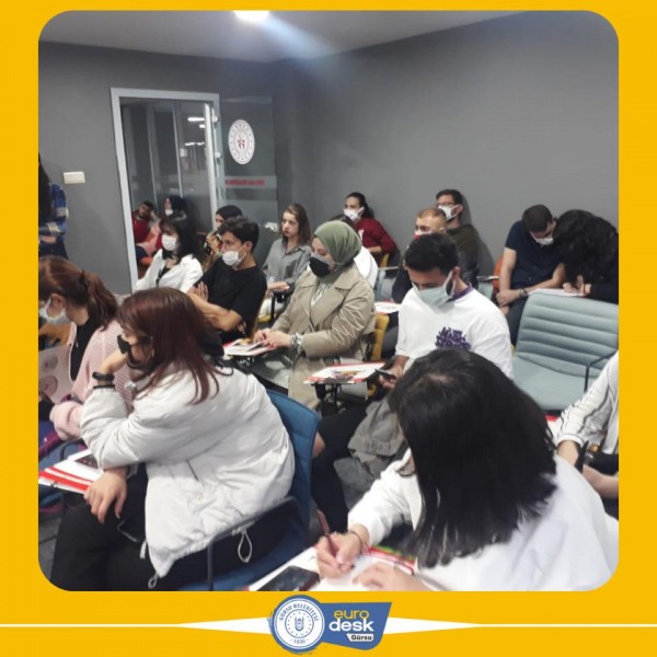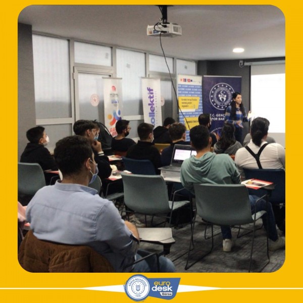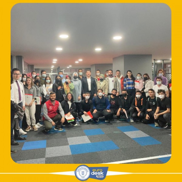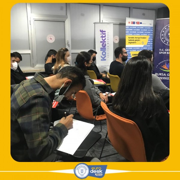 Bursa Gençlik ve Spor İl Müdürlüğü ve Gürsu Belediyesi Eurodesk Temas Noktası olarak 04.11.2021 günü Uludağ üniversitesi gençlik ofisinde 35 gencimiz bir araya geldik.Gençlerimize ücretsiz olarak katılabilecekleri Avrupa Birliği Programları ve Projeleri hakkında bilgilendirmeler gerçekleştirdik. üniversite okurken yurtdışı projelerinde nasıl yer alabilecekleri hakkında bilgilendirmeler ve örnek projeler gösterdik.Bununla birlikte ise açık olan çağrılar ve hibe kurumlarını gençlerimize ta