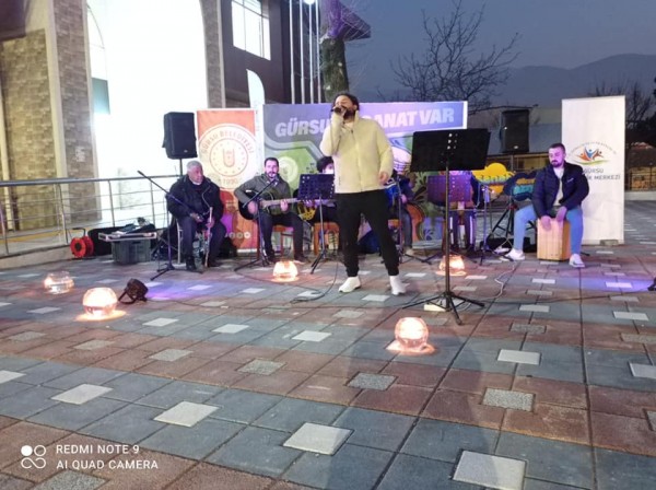 Gürsu Belediyesi’nin sosyal medya hesapları üzerinden canlı olarak yayımlanan konser, Gürsu’nun yeni kültür, sanat ve etkinlik merkezi olarak hizmet vermeye başlayan Gençlik Merkezi önünde gerçekleştirildi.