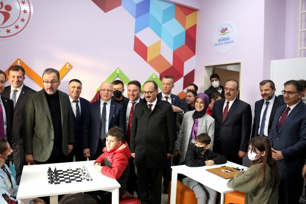 Bursa ve Gürsu protokolünün üyeleri ve Gürsulu başarılı sporcuların katılımıyla gerçekleştirilen açılış töreni sonrasında katılımcılar Gürsu Gençlik Merkezi’ni gezdi.