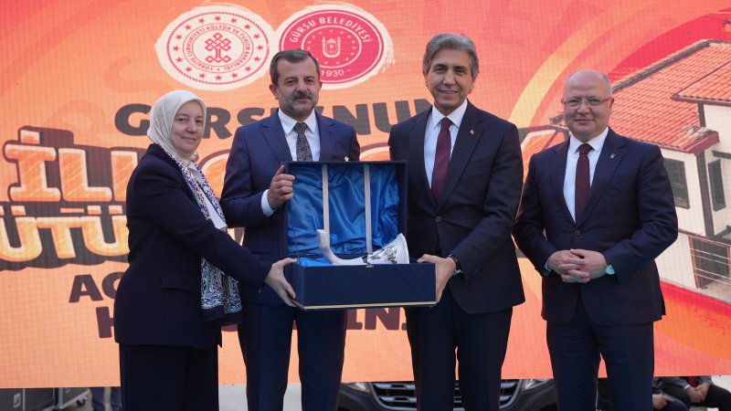 Törene ev sahipliği yapan Gürsu Belediye Başkanı Mustafa Işık, “Sizleri tarihi Taş Köprü Sokağı’nda ağırlıyoruz. Gürsu belediyesi olarak burada yürüttüğümüz tarihi Taş Köprü Projesi’ni sizlere kısaca aktarmak isterim. Çocuk Kütüphanesi Projesi, aslında yürüttüğümüz bu önemli projenin bize en büyük hediyelerinden birisi. Gürsu’da toplamda 57 adet tescilli yapı bulunuyor. Bu yapıların 21’i yıkılmış ve 36’sı kısmen ayakta olan yapılar. Bursa Valiliğimiz ile ortaklaşa yürüttüğümüz ve Kültür Bakanlığı’mızdan da destek aldığımız Tarihi Taş Köprü Projesi kapsamında, adeta proje içinden proje çıkardığımız bu kütüphane 2021 yılında 2.655.877 TL’lik Valilik hibe desteği ile düzenlendi. İhale bedeli yaklaşık 11 milyon TL olan Gürsu Çocuk Kütüphanesi ve Atölye Merkezi yapımında 5 Milyon 160 Bin TL destek sağlayan Kültür ve Turizm Bakanlığımız’a da ayrıca teşekkür ediyorum” dedi.