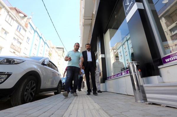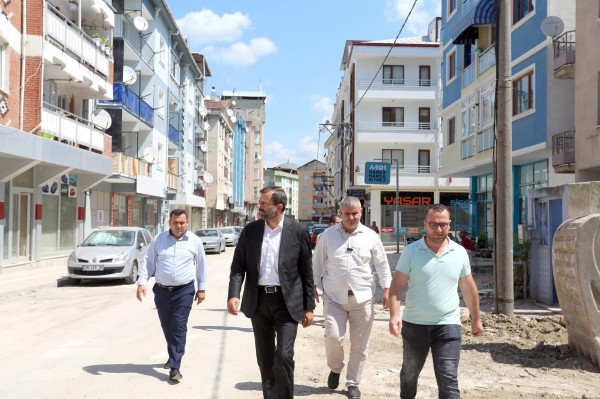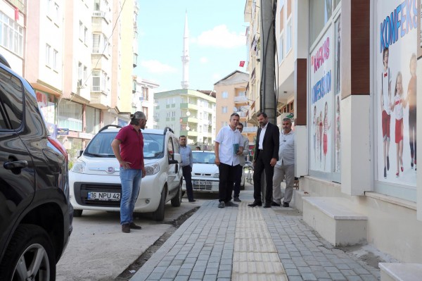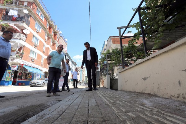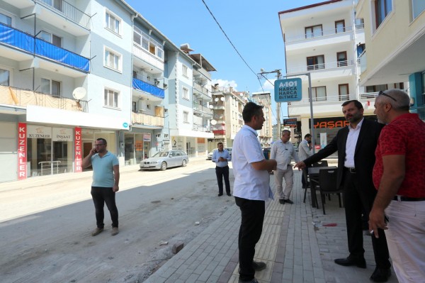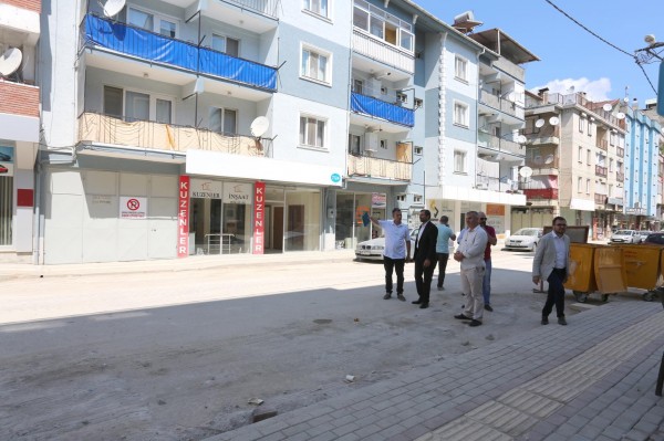 Cadde’de yapılan çalışmaları inceleyen Başkan Işık, çalışmalara ilişkin olarak yetkililerden bilgi aldı.