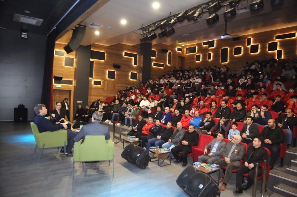 Şampiyon Teknik Adam Ertuğrul Sağlam, Gürsulu gençlerle futbol serüvenindeki tecrübelerini paylaştı.