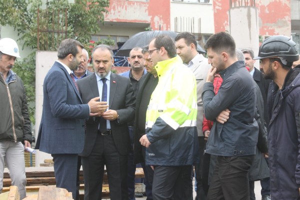 Büyükşehir Belediye Başkanı Alinur Aktaş, Gürsu Belediye Başkanı Mustafa Işık ve Ak Parti İlçe Başkanı Zekeriya Hacıoğlu Gürsu Yenidoğan Mahallesi Kapalı Pazar Yeri’nin inşaat çalışmalarını inceledi.