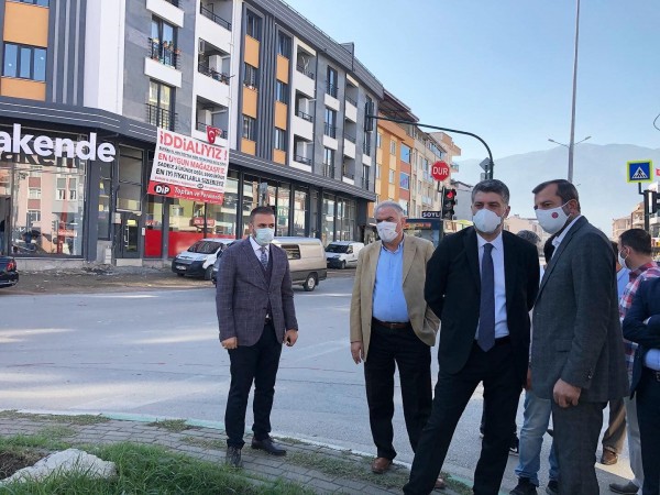 Büyükşehir Belediyesi Genel Sekreteri Ulaş Akhan ve UKOME yetkilileriyle Cüneyt Yıldız Caddesi’ndeki kavşak, refüj ve kaldırım çalışmalarını inceleyen Gürsu Belediye Başkanı Mustafa Işık, “Nüfusu 100 bine yaklaşan Gürsumuz