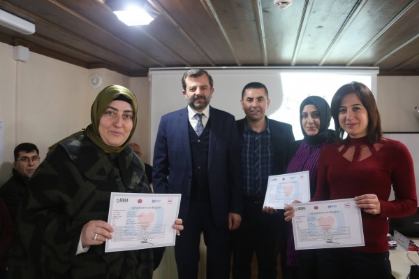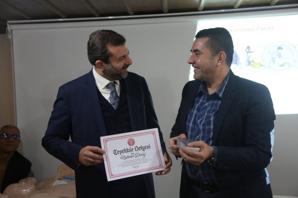 Gürsu Belediyesi’nin “Afet ve İlk Yardım Bilinci Hayat Kurtarır Projesi” kapsamında açılan kursta eğitim verilen kursiyerler sertifikalarını aldı.