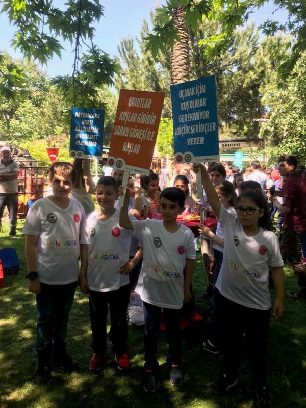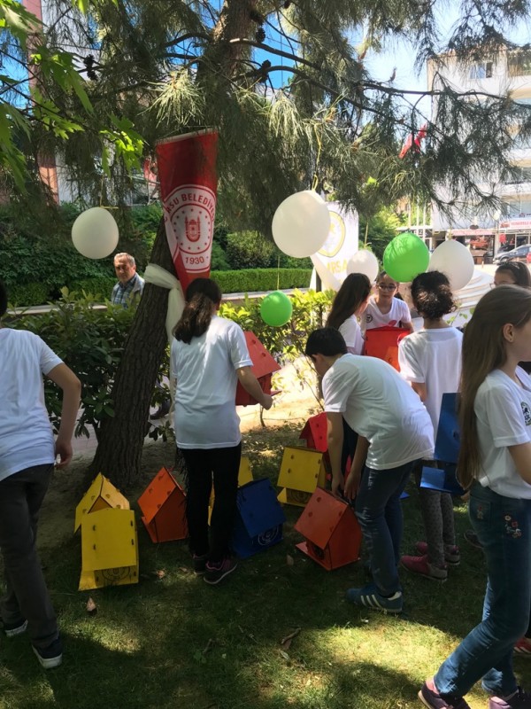 öğrenciler, “Uçmak İçin Kuş Olmak Gerekmiyor Küçük Sevinçler Yeter”, “Umutlar Kuşlar Gibidir Sabah Güneşi İle Başlar”, “Hayvanlara Karşı Kalbimizde Merhamet Olmalıdır” yazılı pankartlar ve kuş evleri ellerinde ilçe merkezinde yaptıkları yürüyüşün ardından, kuş evlerini ağaçlara astılar.