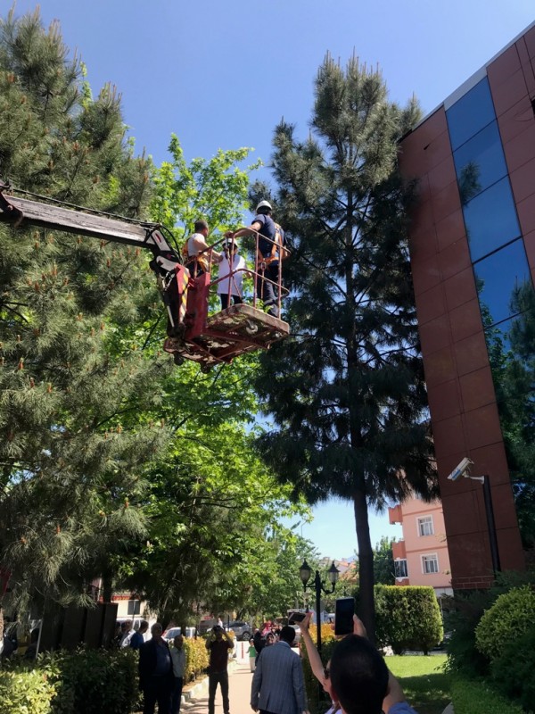 Belediye hizmet binası önünde, kuş sesleri eşliğinde yapılan törenin ardından, öğrencilerce ağaçlara asılan kuş evleri, daha sonra Belediye personeli tarafından ilçe merkezinde çeşitli noktalarda ağaçlara asıldı.