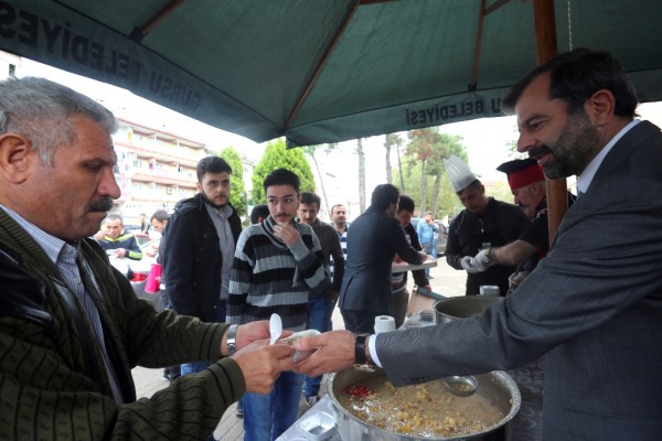 Gürsu Belediyesi tarafından, ilçe merkezinde halka ve esnafa aşure ikram edildi.