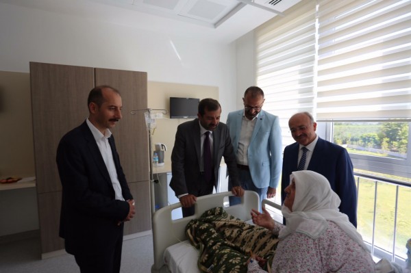 Gürsu protokolü, Şehit Cüneyt Yıldız Devlet Hastanesi’ni ziyaret ederek nöbetçi sağlık personeli, hasta ve hasta yakınlarının bayramlarını kutladı.