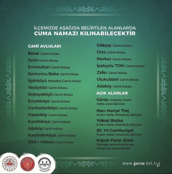 Gürsu Belediye Başkanı Mustafa Işık, “Maneviyatımızın temel taşlarından camilerimizi, kalplerden süzülecek duaların sıcaklığıyla buluşmaya hazırlıyoruz. Hepimiz özledik camilerimizde huşu içerisinde kıldığımız namazlarımızı. İnşallah yakında omuz omuza namaz kıldığımız günlere de kavuşacağız. Cemaatlerimizin alınması gereken önlemlere titizlikle uymaları konusunda gösterecekleri hassasiyetle, kurallara uyarak, önlemlerimizi alarak bu zor günleri, yakında atlatacağız inşallah” dedi.