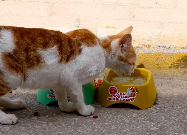 Sıcak havaların etkisini göstermesi ile Gürsu Belediyesi Veterinerlik Birimi sokaktaki canlarımızın suya daha çok ihtiyacı olduğunu dikkat çekmek için sokak sokak gezip su kaplarına su, mama kaplarına mama doldurdu.