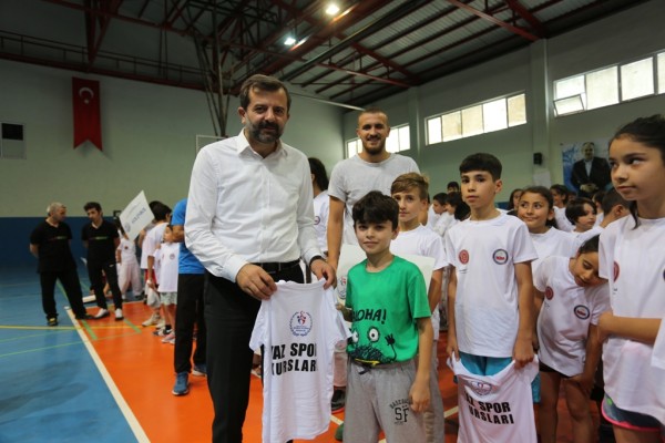 Gürsu Belediyesi’nce, Yaz Spor Okulları’nda eğitim alacak öğrenciler için yaptırılan 1000 adet tişört, Gürsu Belediye Başkanı Mustafa Işık tarafından öğrencilere dağıtıldı.